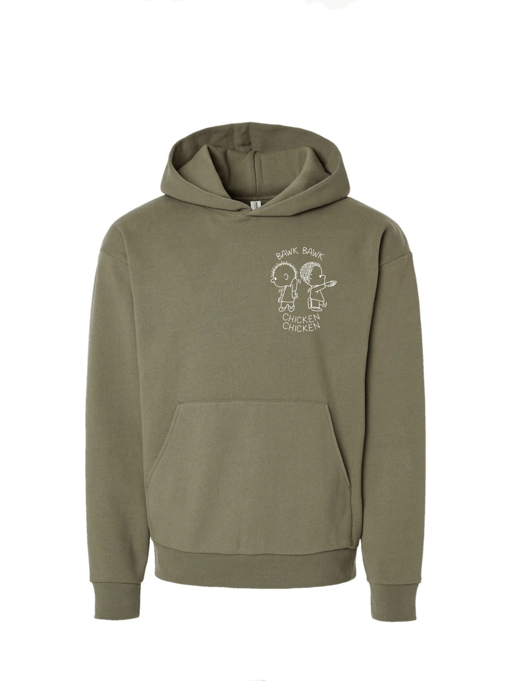 Printed on independent trading co heavyweight hoodies. Cotton/poly blend. Classic fit.